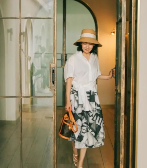 紫色衬衣保有轮廓方面的区别,太紧身会营造各种衣著方面的不适,也会显得拘谨,能保留稍宽一点的上色,不会勒肉,增加舒适度在下半身结合的印花裙更是种类丰富,样式繁多以这条粉色简单的裙装为主要的搭配对象,更能让质感维持从简原则,不会携带具备花哨感的风险。