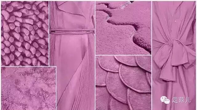 紫配色在去年并不是关键盛行风尚之一,但是在2016春夏偏粉的紫色将会成为关键色的首选,灵感源自2014年的本年度色丁香紫,粉紫色与丁香紫相比色调亮度也有所提高。甜美的粉紫色呈现舒缓平静的柔美格调,在2016春夏盛行风尚的地位不言而喻。