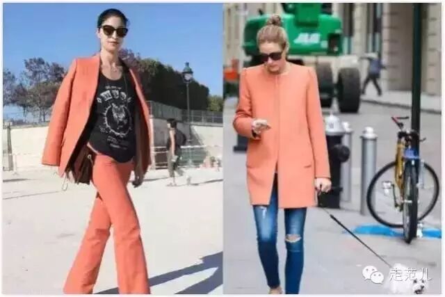 在整个色谱里,橙色具有兴奋度,是最耀眼的美感。去年的粉橙色向珊瑚橙的色板靠拢,色调变暗,令整体橙色温轻盈谐。潮人们在春季里也对暖配色钟爱有加,是冬季过渡到春季的极好选择。