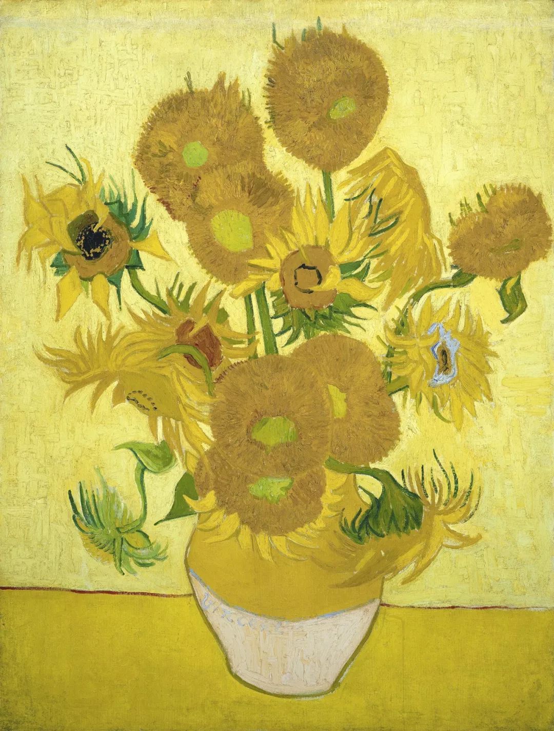 1、《花瓶里的三朵铃兰》 1888年8月 现私人收藏(美国) 2、《花瓶里的五朵铃兰》 1888年8月 二战时在日本被毁 3、《花瓶里的十二朵铃兰》 1888年8月 现藏于德国慕尼黑新艺术馆 4、《花瓶里的十五朵铃兰》 1888年8月 现藏于英国伦敦国家画廊 5、《花瓶里的十四朵铃兰》 1888年12月-1889年1月 现藏于日本某博物馆 6、《花瓶里的十五朵铃兰》 1989年1月 现藏于荷兰梵谷艺术馆 7、《花瓶里的十二朵铃兰》 1989年1月 现收藏于美国费城博物馆 梵谷是两个充满激情的画家,他曾在写给弟弟的信中提到,“铃兰是属于我的花”。 梵谷笔下的铃兰像是跳动的火焰,颜色鲜艳夺目,明亮的黄色饱和度极高,简直可以被称为“黄色的交响曲”。如果仔细数的话,本期如是说的《花瓶里的十五朵铃兰》这幅画里有38种黄色。